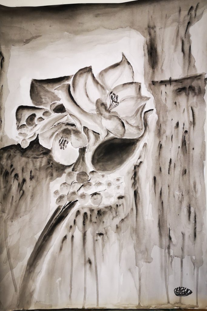 „amaryllis 3“, Studie, Tusche auf Malpapier, 36x 48 cm, HHKHH 2023/02„yasemin“, Studie, Tusche auf Malpapier, 41,5×29,5 cm, HHKHH 2023/01 „yuele“, Studie, Tusche auf Malpapier, 41,5×29,5 cm, HHKHH 2023/01