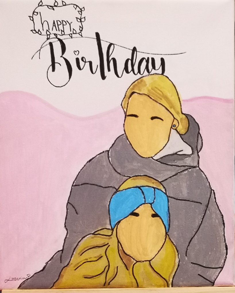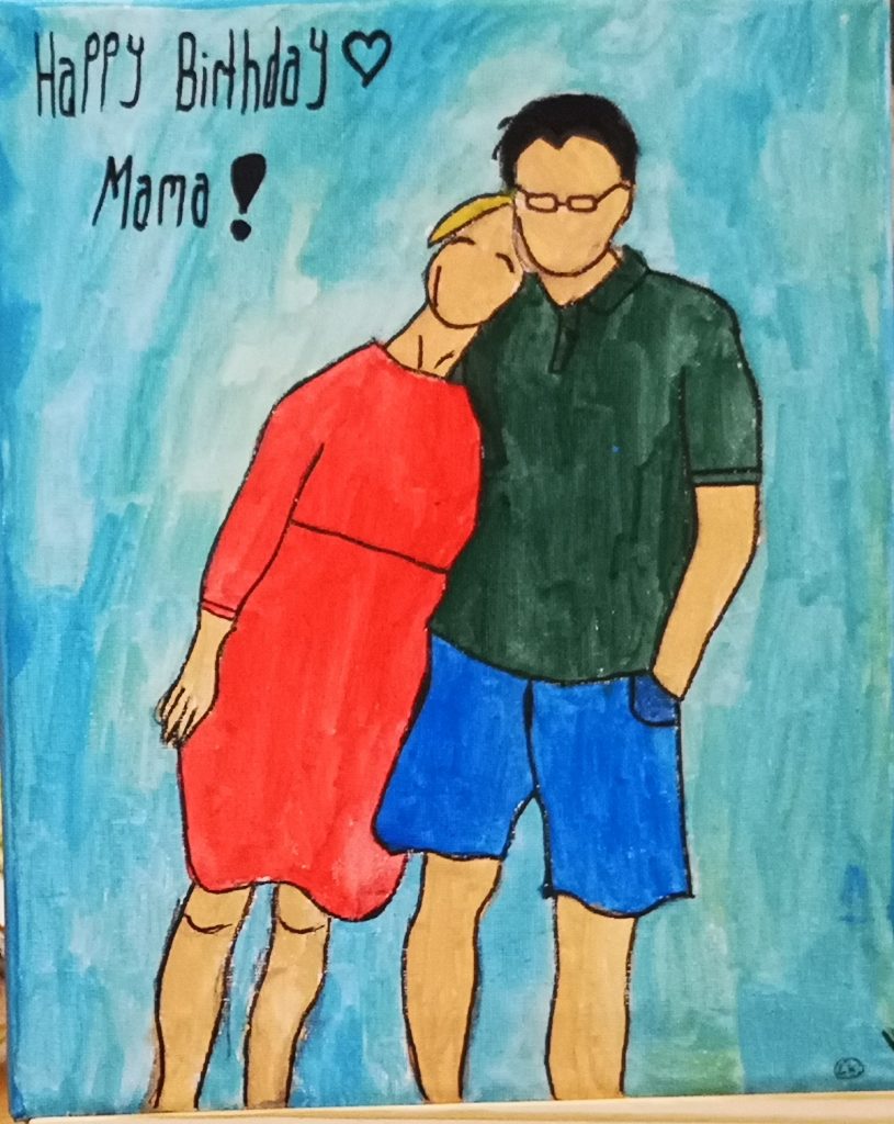 „mama und papa“, Geschenk für Mama Antje, Acryl auf Leinwand, 29×24 cm, Lisa-Sophie Kischkewitz, 2023/01„lisa und lena“, Geschenk für Mama Claudia, Acryl auf Leinwand, 29×24 cm, Lisa Henning, 2023/01