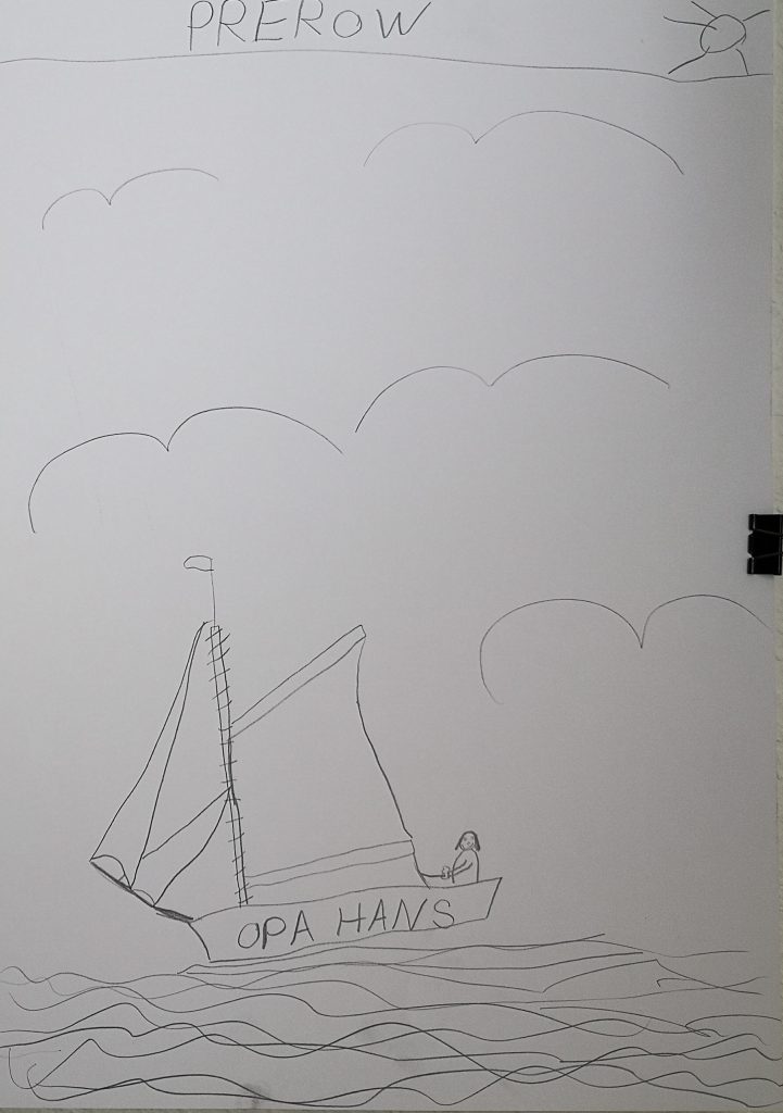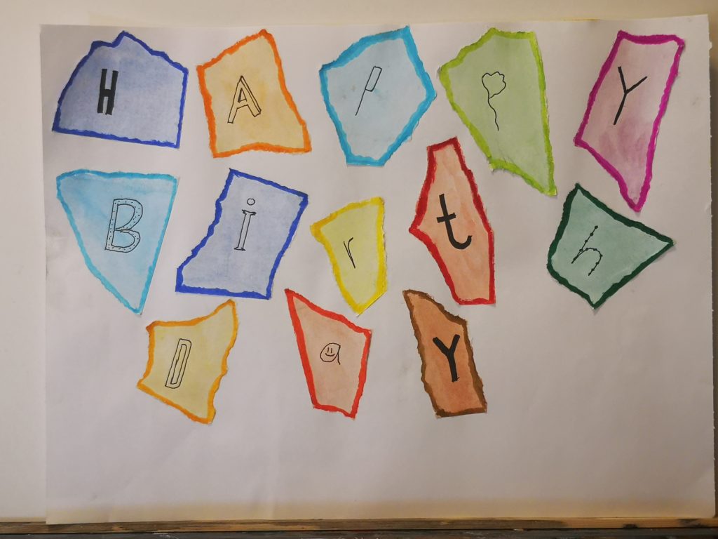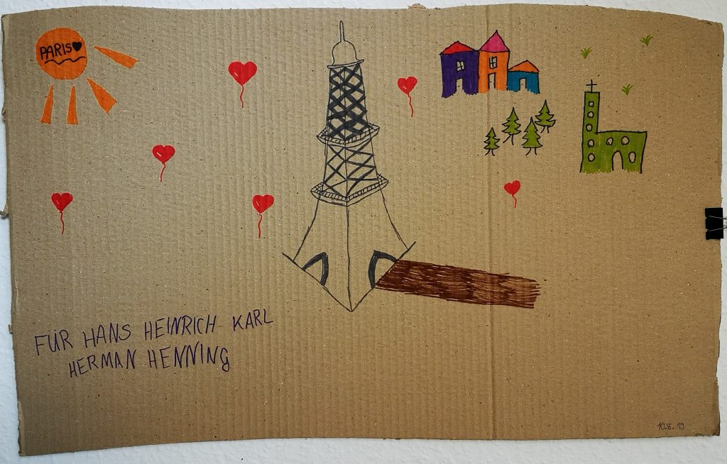 „happy birthday“, viel Glück, Collage auf Malpapier, 28,5×40 cm, Lisa-Sophie Kischkewitz, 2023/07„gute geister“, Gesundheit, Tusche auf Malpapier, 29,5×40 cm, Anna-Josephine Kischkewitz, 2023/07„opa hans“, Frohsinn, Tusche auf Malpapier, 29,5×40 cm, Tim-Jonathan Kischkewitz, 2023/07